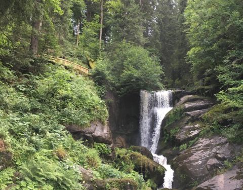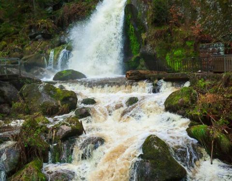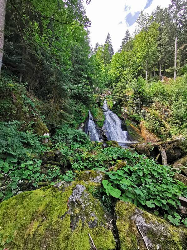德国第二高的瀑布,是一座阶梯瀑布,由7个主要的小瀑布组成,总落差163米。 位于黑森林小镇特雷堡西面的Gutach河上,河水从海拔872米的高原平台沿着山坡倾泻而下,汇入海拔711米的谷底。 长期以来,它一直以德国最高的瀑布自居。实际上德国最高的瀑布位于国王湖Obersee附近,落差达470米的Röthbachfall,但是由于后者的知名度低,交通不够便利,因此被前者篡夺了德国第一的称号。 阳光洒在瀑布上,景象蔚为壮观,一直持续到晚上10点,晚间会有彩灯。