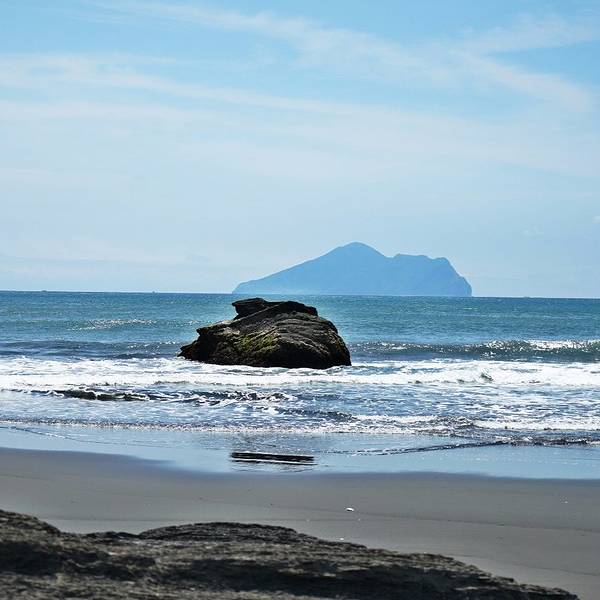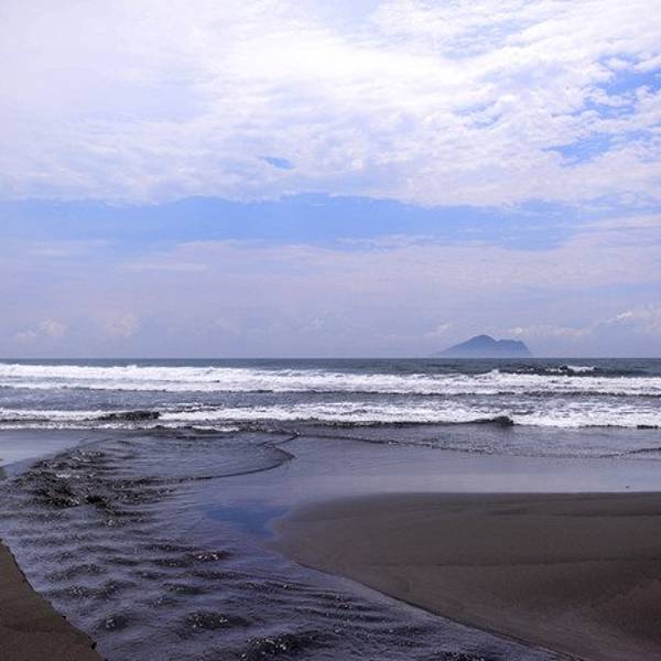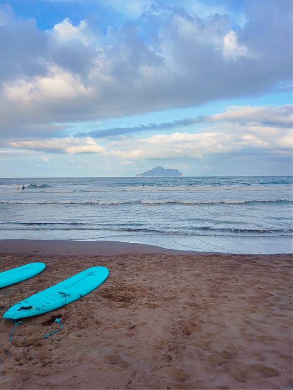 宜兰外澳双狮海滩,沙滩对岸是龟山岛🐢北台湾热门的冲浪点之一,它的浪非常适合冲浪,每分钟都有一道浪涌过来🌊