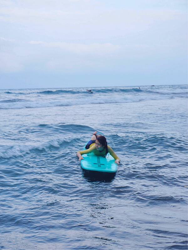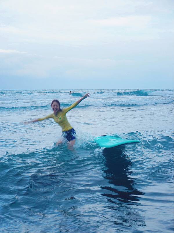 在这里给想来的小伙伴普及一下冲浪的流程,外澳这边由于近海地势的原因,非常的适合冲浪,整个沙滩都非常之平缓,走进去几十米海水也只到腰部而已,所以这边存在着很多间的冲浪店。冲浪的价格是500台币一个冲浪板,你可以两个人租一个,也可以三个人租两个,不太建议一个人租一个,因为当你开始了之后会发现这是一项耗体力的运动,而且毕竟还要有一个拍照的小伙伴呀,不然怎么满足我们发“九宫格”的愿望。而这500块的价格包括一个人的冲浪教学,一件防晒的衣服,和一个冲浪板。签好合同交完钱之后就可以下去沙滩找你的教练,毕竟所有的冲浪学校都是沙滩上,一眼还是找不到的。然后在沙滩上开始教学,负责任的教练会让你反复的练习,只有在沙滩上牢记所有的内容,才有可能安全愉快的下海玩耍。这样沙滩上教学之后,教练会让你带着冲浪板到海里继续教学,当然通常只是教个几次就让你自己玩了,我们遇到一个超级好的教练教了我们番薯好久好久(难道是因为我们番薯也叫番薯?)。 展开