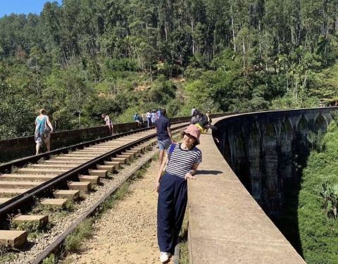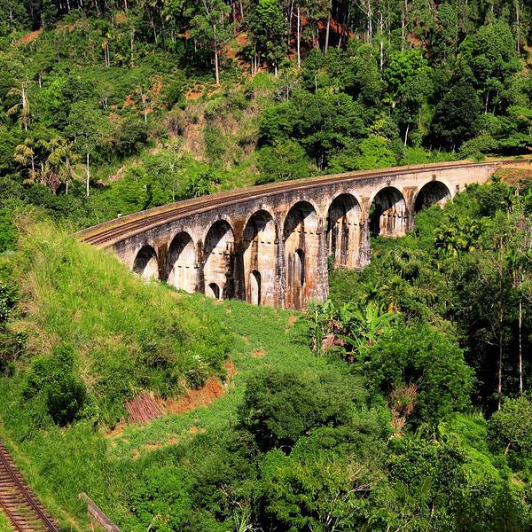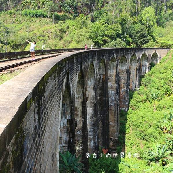 1921年建成的九拱桥 又被称为斯里兰卡的天空之桥 不用钢铁 只靠水泥石头完成 是殖民时期铁路...斯里兰卡之行 处处可见英国殖民地的证据 ⋯⋯走到哪 铁路和桥就盖到哪 1921年建成的九拱桥 又被称为斯里兰卡的天空之桥 不用钢铁 只靠水泥石头完成 是殖民时期铁路建设成功的典范 也是英国工程师 和锡兰建商共同...斯里兰卡之行 处处可见英国殖民地的证据 ⋯⋯走到哪 铁路和桥就盖到哪 1921年建成的九拱桥 又被称为斯里兰卡的天空之桥 不用钢铁 只靠水泥石头完成 是殖民时期铁路建设成功的典范 也是英国工程师 和锡兰建商共同完成的壮举 拱桥长91公尺 深24公尺 至今 仍是火车往来的要道 观光客在铁道上种草 有的 还爬上45度倾斜的桥壁 胆兒真肥 由车站往来九拱桥 有点小辛苦 直到坐上归程的火车 才得小憩片刻 同行的歪果仁可不消停 在迂回的山路行进时 探出头 把住车门把手 好像 不留下一张惊悚的写真 就不能昭告天下 我来过这个鸟地方 虽然车如牛行 心中依然忐忑 紧紧抓住手机 草草按下快门 笑容灿不灿烂不要紧 我的宝贝苹果 可不能失手留在这儿啊~ 展开