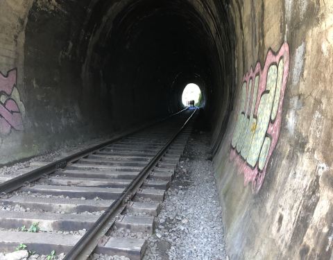 来这里的路并不好走,当时小哥带我们抄的小路(比起后来去爬的一个山洞这个又算不上什么了= =,...小哥说这是一座有名的桥,运气好的话能够看到火车一路开过的独特景象,我们就赶上了这种运气哈哈。