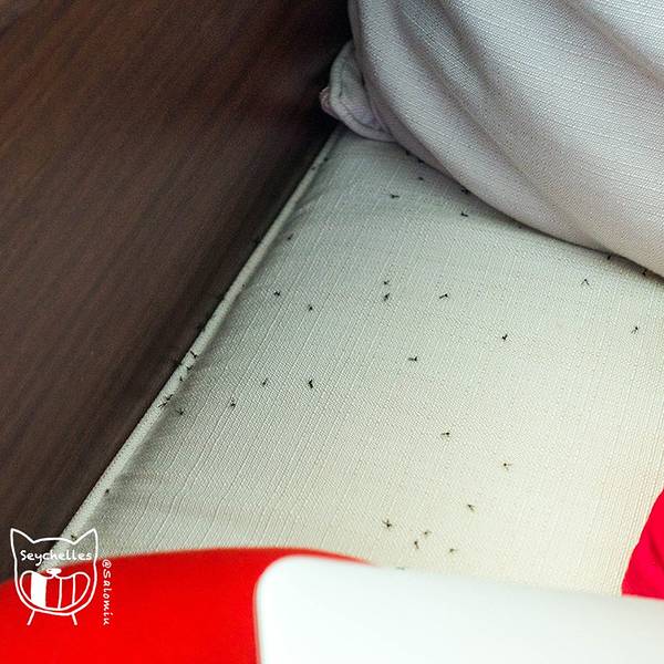 从地图上看,位于非洲大陆东边、印度洋西边的毛球、马达、塞舌尔三个岛国相距并不远,但从塔那到马埃岛,我看完了一部电影还睡了一会儿。 同排就坐的还有一个法国老爷爷,据说他有生意在马达,此行是从塞舌尔转机回巴黎。在聊天的过程中,听闻我要去塞舌尔,他吐吐舌头表示“really expensive”…我就不信了,我就要玩个不那么贵的。 4个小时后,飞机和太阳一起安全降落。这个曾经梦想过一定要来的地方,就在我脚下了。塞舌尔的机场很小,一层楼搞定。入境卡在飞机上填写好,这趟人不多,入境处空荡荡的。入境手续也比较简单,查看返程机票订单,查看酒店订单,很快就在护照上,盖上了萌萌哒章——一只塞舌尔特产,海椰子。 入境后,最重要的就是买电话卡、换钱。在塞舌尔换汇,请牢记Bureau de Change,这里的汇率是最好的(面对check in柜台,右手边)。但抵达时间太晚,柜台关掉了,只能去另外的窗口换,所以只换了打车到维多利亚的钱和买电话卡的钱。 买电话卡的地方叫Antigone Bookshop,在check in柜台左边,和餐厅在一处。老板娘是一个看起来不太和善但其实非常热心的人,买电话卡时,会用一种自带焦虑的神情询问需求,然后推荐最合适的一种,听说要去市区,还很热心地帮我们联系她认识的司机,有小小的折扣。机场门口停着非常多出租车,司机会有序地等在出口。打车都是一口价,从机场往北到维多利亚,或往南到Green Estate均为400sr,如果住宿的酒店或公寓没有安排接机,记得提前问好出租车价格,或者让酒店、公寓联系熟悉的司机,能更快更便宜地抵达。 从机场出来已是8点,一路上没有路灯,车辆也很少,空气潮湿,司机把冷气开得特别足,坐在车上,好奇地望着窗外,企图从这一片黑暗中略微窥探些什么。然而除了满天的星星,什么都没有。 十多分钟后,司机把车停到了预定的公寓门口,老板站在那儿,给了一个热情的握手。 这间公寓中文叫“莫莱尔”,在网上评分高达9.3分,评论里一片好评,无数人都以“非常方便、景致美、老板人好”来形容,因为只在马埃岛有短时间的停留,且要购买接下来的船票、预订行程,选这里再好不过。公寓坐落在马埃岛的半山腰上,房间宽敞,干净舒适,所有生活用品一应俱全,推开落地窗,可以俯瞰维多利亚的风景,门口就是公交站,去哪里都方便,厨房设备齐全,终于可以摆脱“西餐”的梦靥了。老板非常非常耐心,从厨房器具的使用、楼下公交的班次、他的房间号一一交代,当问到出海行程时,他说他有一个朋友在做这门儿生意,可以帮忙安排第二天的行程——以一个优惠的价格。 老板特别提到了遍布塞舌尔且无法消灭的小虫…… 放两张图先感受一下这可怕的小虫子……在马埃岛和普拉兰的每个早上,屋子里到处都是…(据说虫子是近来才出现在塞舌尔,还不知道要怎么对付,晚上一定要关好门窗……)收拾完毕后,进入了在塞舌尔的第一个梦乡。