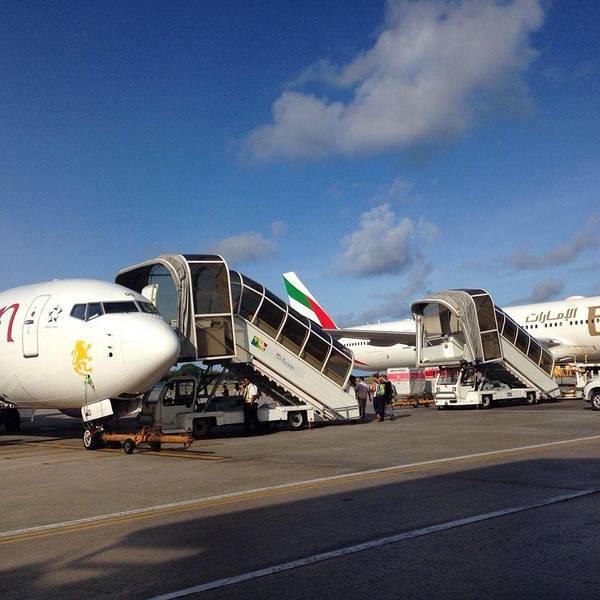 斯里兰卡航空飞机空间偏窄,几乎整夜无眠,经过长途飞行,终于来到位于马埃岛的塞舌尔国际机场。机场设施非常简朴,可是扑面而来的清新空气让我们忍不住大口呼吸,我和老徐都有咽炎,嗓子整天刺刺挠挠的,深呼吸...