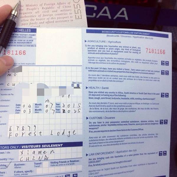 入境卡的填写 入境了塞舌尔,我们就在机场找兑换当地卢比的窗口以及卖电话卡的窗口,但因为到达的当天是星期六,所有的那种窗口都关门了,这个小细节还是要注意! 最后我们还是用了50欧元打车去了酒店,途经过维...