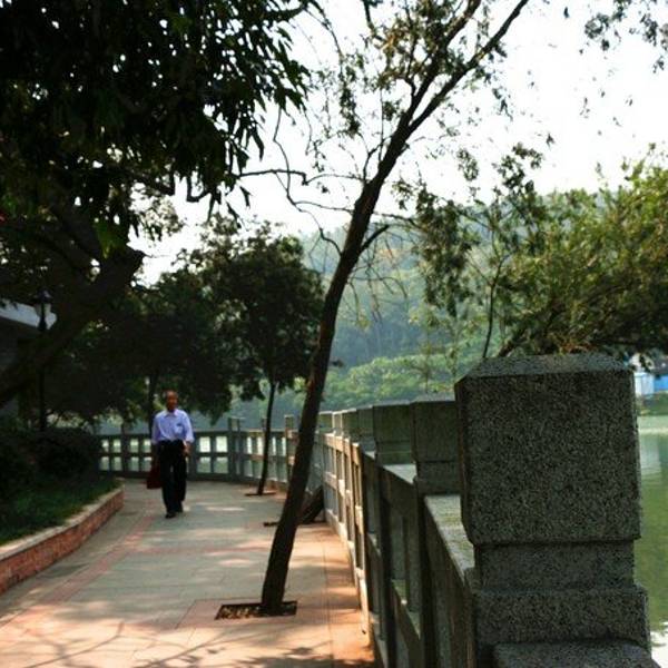 横跨玉湖。阳光灿烂,心情美美。真的拍得有点美。广场,挺漂亮的。公交路线。出发。幽静的小路
