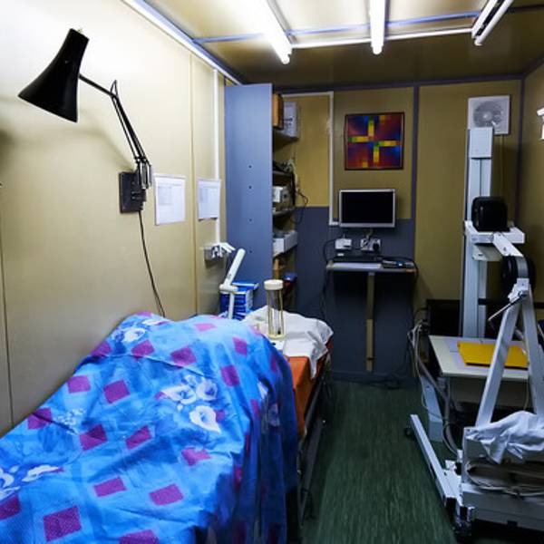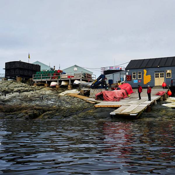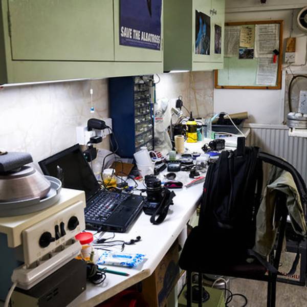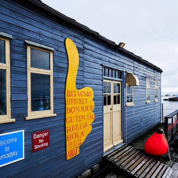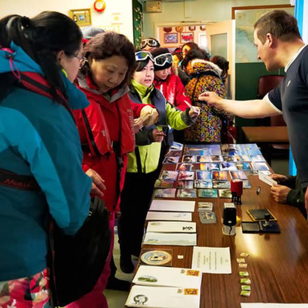 乌克兰的科考站主体建筑共有上下两层。两层之间通过一处转角楼梯连接。楼梯的墙壁上贴满了科考站从创建伊始到现在的照片,在某种程度上说,历史就是一种荣誉。二楼有一个针对来往游客的小邮局,这里出售明信片和邮票,可以在这里寄明信片到世界其他地方。可以把准备好的明信片带来,买上邮票,盖上邮戳。最好的办法就是之前在船上就把明信片写好,而且只在这里寄出一小部分。而且乌克兰科考站寄出每张明信片的收费是3美元,不管寄到世界上任何国家和地区都是这个价。
