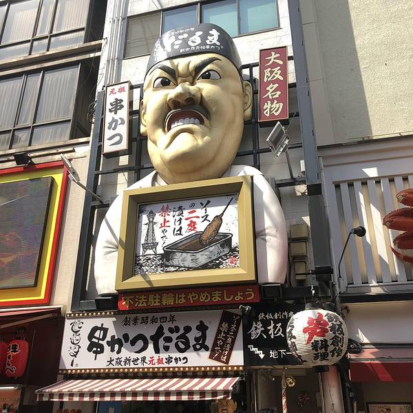 (新世界总店)从大众点评搜到了元祖串串烧,想尝尝。标志性的人物。吃饭是需要脱鞋的,有种日式的赶脚。有中文菜单和中文服务生,沟通无障碍。味道很好,但因为都是油炸食品,吃多了还是有点腻。终于明白为啥日本人都那么瘦。