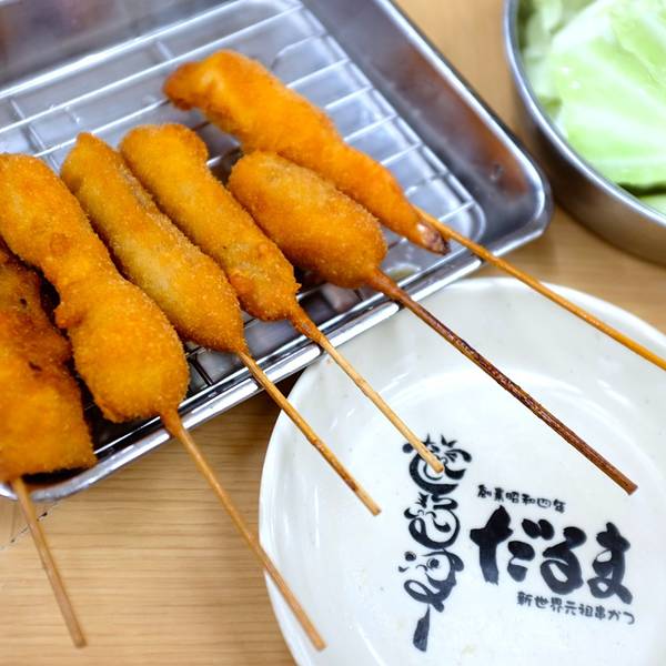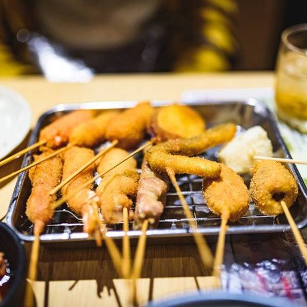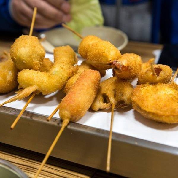 元祖串串烧是一家拥有大概90年历史的老店,据说道顿崛这里的生意极好,晚上九点钟了,吃客还在门口排队,导致我们望而却步。今天就要离开日本了,排队也要吃。 蘸了恶老板特制的酱汁,其风味清爽回味,绝对不会觉...