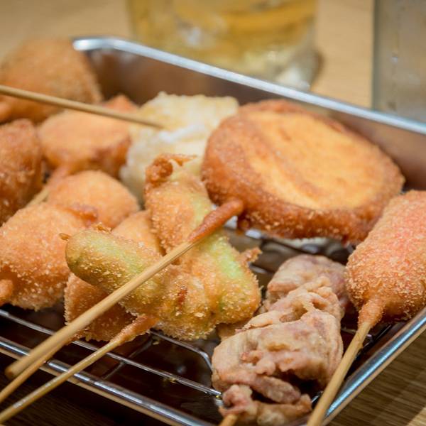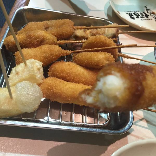 (新世界总店)从大众点评搜到了元祖串串烧,想尝尝。标志性的人物。吃饭是需要脱鞋的,有种日式的赶脚。有中文菜单和中文服务生,沟通无障碍。味道很好,但因为都是油炸食品,吃多了还是有点腻。终于明白为啥日本...