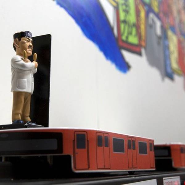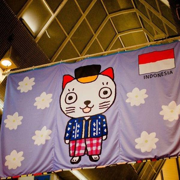 从大众点评搜到了元祖串串烧,想尝尝。吃饭是需要脱鞋的,有种日式的赶脚。标志性的人物。(新世界总店)