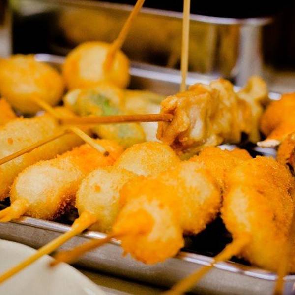 元祖串串烧是一家拥有大概90年历史的老店,据说道顿崛这里的生意极好,晚上九点钟了,吃客还在门口排队,导致我们望而却步。今天就要离开日本了,排队也要吃。 蘸了恶老板特制的酱汁,其风味清爽回味,绝对不会觉得重口味,更不觉得油腻,果然名不虚传哇!