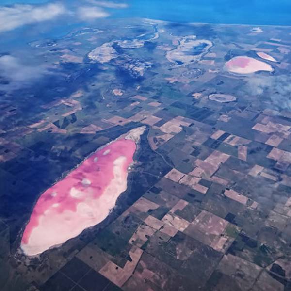 乌斯怀亚的机场确实也非常环保,候机楼整一个木制建筑。飞机刚从海上飞抵大陆就出现了这个粉红色的湖泊