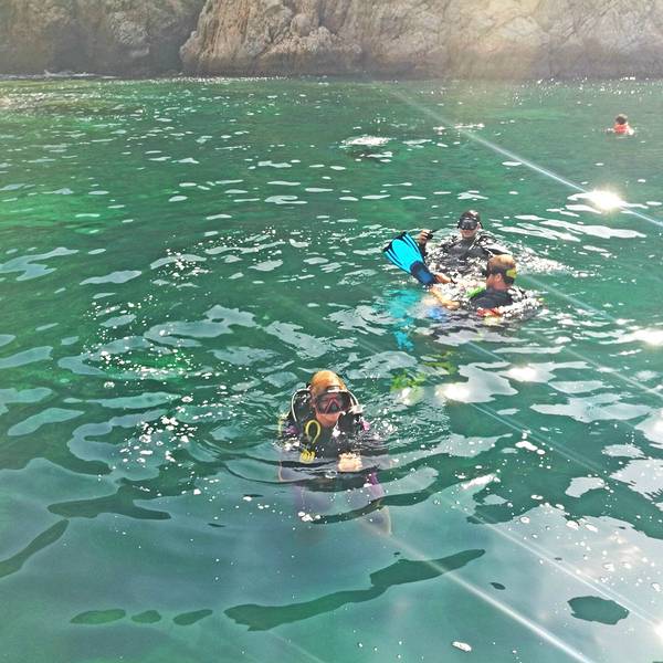 咱们这一船加我就三个人体验潜水。