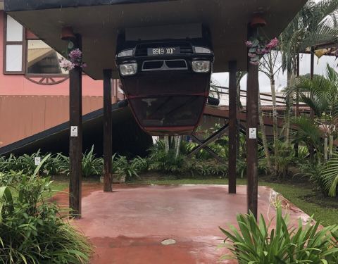 住莎莉雅,看地图大概20分钟左右的车程,是去神山相同的方向。景点地方不大,由颠倒屋、3D馆和礼品店三部分组成。之前去过兰卡威东方村的3D馆,看这个比较小,就没参观,只去了颠倒屋。颠倒屋是以沙巴州第二大族人巴焦人的居所为原型建造而成的,先由厨房开始参观,包括卧室、客厅、厕所、阳台,里面不可以拍照,敲门进入。