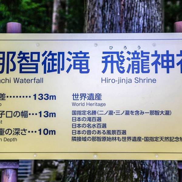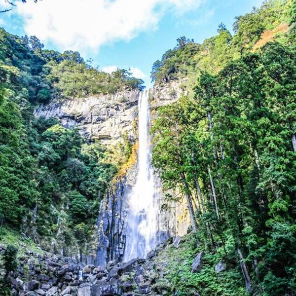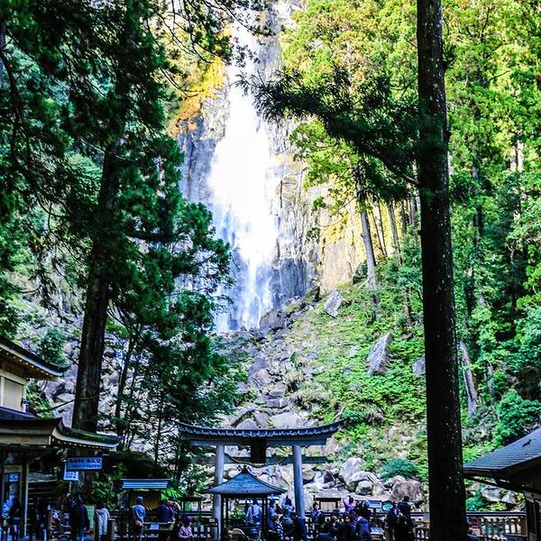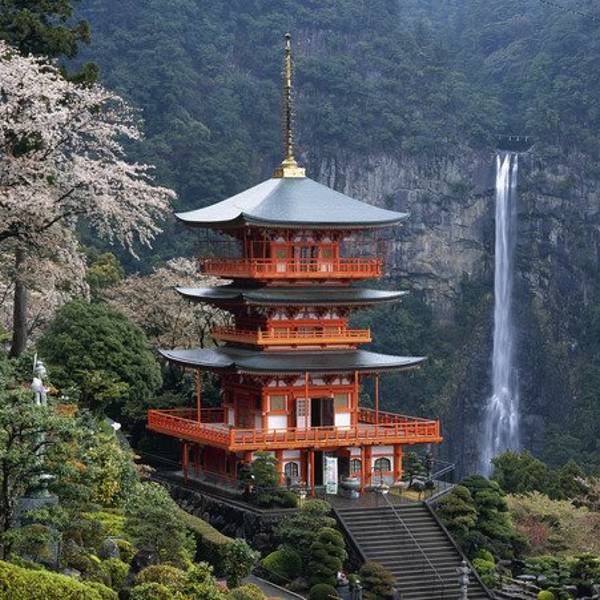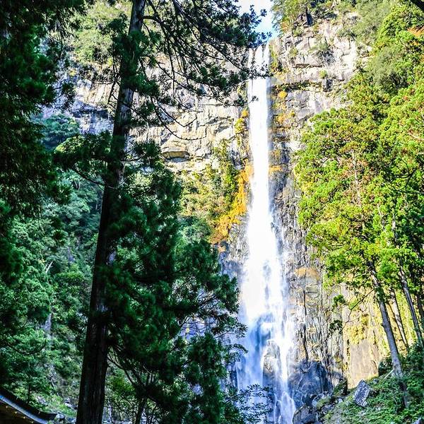那智瀑布位于和歌山县东牟娄郡那智胜浦町的那智川,是日本知名的瀑布之一。它与栃木县的华严泷、茨城县的袋田泷并称为日本三大名瀑。那智瀑布落差133m,宽幅13m,瀑潭深10m,在这里,生长着千姿百态的植物,周围还有48条瀑布。走到观瀑处就可以在近处看到瀑布飞流直下的情形,非常壮观。观瀑优选位置有二,一是在建于瀑布下方的飞泷神社,由此可上望瀑布宏伟景象及近听隆隆流水声,有兴趣的还可进入神社;另一则在那智山中腹的青岸渡寺三重塔前(由飞泷神社大门步行10分钟可达),在此可从高处观瀑布直奔百米深处的场面。经过那智瀑布,沿石阶向上便是熊三山之一的熊野那智大社。居高临下眺望四周,有残留着平安时代气息的熊野古道及与那智瀑布正面相对的青岸渡寺,风景怡人。