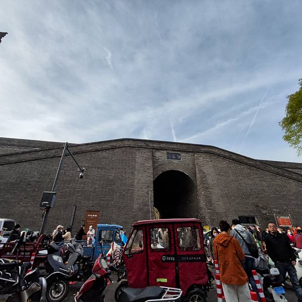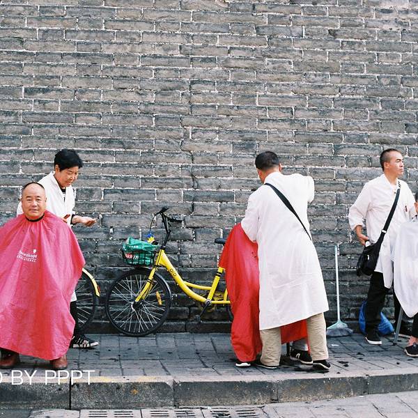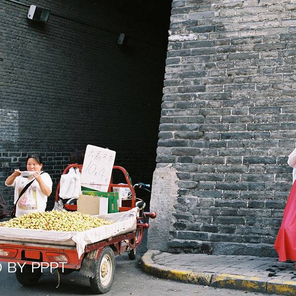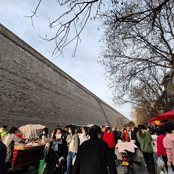勿幕门也叫小南门,只有一个城门洞,它可来头不小,虽然跟不远处南门的阔气、壮丽比起来相差的多,别小看它,这里面可藏着很多古城秘密呢。现在呢,我们往前走几步,先别着急进城门,来了 西安 呀啥事都得慢,看到城墙下的环城公园了吗?你肯定问我这有什么稀奇的,不过你仔细听,仔细听,你能听见环城公园里播放着古香古色的BGM,再看看城墙,不用怀疑,你已经穿越 成功 了。你摸摸城墙上粗粝的砖,有一千多年了吧,历史的沧桑冗长在你手指间轻轻的划过,现在的城墙是经历过很多次修建而成的,最早它可是隋唐的皇城墙。当心头上,看到那根木桩了吗?可能随时会掉下来的哦,城墙可不是只有砖的,别傻眼看啦,当心着走。记得,出城门洞后眼睛要跟得上,城门两边一边是集市一边是剪头匠人,仿佛是要给这城门做门神似的,亘古不带互换的,前方的夜市摊上的醉人们还没离去紧接着的早市摊上已经有了食客,来来往往的小推车,让你应接不暇,这便是日常中的长安城。看到右手边的剪头匠了吗? 城墙下搬一板凳,你坐上去,就能在人来人往中淡定的理头。想试试?我才懒得等你哪。右手边看完了,别忘了左手边的集市,走,过去逛一逛,现在呢,这里就主要卖些蔬菜、服装,小时候我来时还有卖古董呀、还有一些叫不出名的小玩意,总感觉能淘到什么一样,当时那个激动的呀,别提了。除了这些当然少不了小吃,快跟我看看今天有没有摆?我最爱吃的甑jing糕,小时候上学早餐必须吃这个,甜甜的糯米还顶饱,啊,不行不行,口水要留下来了快和我走!