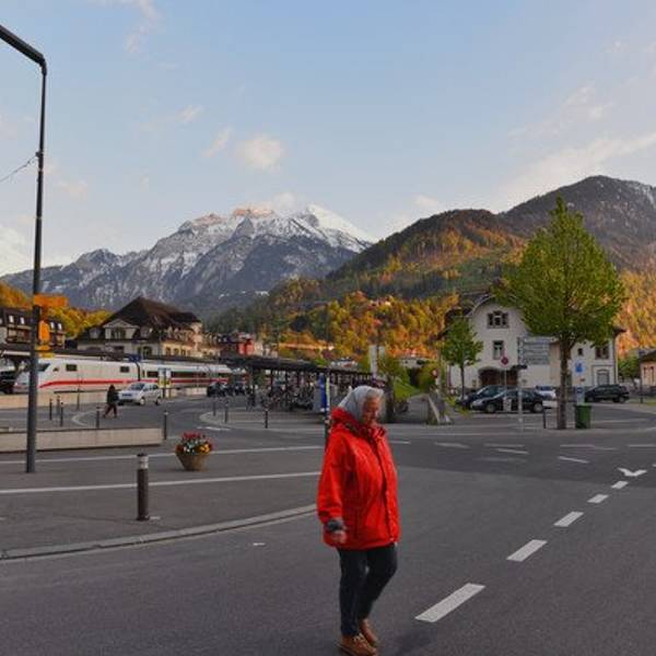 到了因特拉肯西站后,夫人和女儿去Coop超市购买食品和饮料,我则在离超市不远的桥上拍日落。 当我拍照片的时候,有两个韩国的旅游团来这附近吃晚饭,这些韩国人看见后,也纷纷跑到桥上拍照留影,害的我等了二十多分钟才拍好照片。因特拉肯西站夕阳下的因特拉肯西站显得非常地美丽