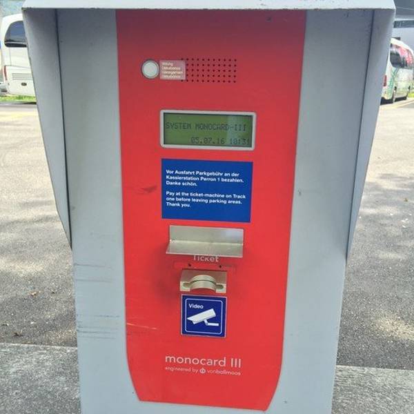 冰淇淋,量大,还便宜 ↑,特想买一盒回去吃,可又怕吃不了。因特拉肯东站停车场里的自助停车缴费机