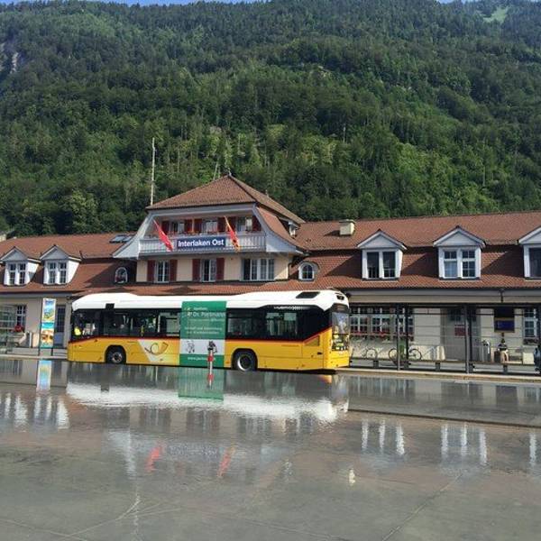 登山列车从东站出发,从伯尔尼方面以及苏黎世机场、巴塞尔乘坐IC首先会到达西站(Interlaken West)。并且由于西站位于市中心,离酒店等设施更近,很多游客选择在此下车。