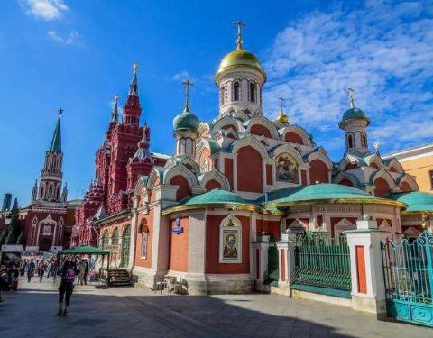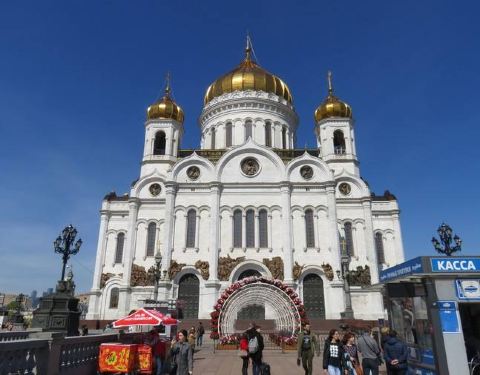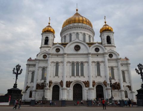 在莫斯科的市中心,克里姆林宫的不远处,矗立着一座很高的东正教教堂——基督救世主主教座堂,教堂的规模很大,可同时容纳一万人齐聚一“堂”。 这座新拜占庭风格的教堂,建于1812年,是一座集宗教性和历史性于一身的纪念建筑物,连同中间的金色穹顶,总高度达103米,其俯瞰之下则呈85米等长的十字形,是一座不折不扣的杰作,也是俄罗斯宏伟的建筑之一。 金顶钟楼 在巨大的金色穹顶周围,四座金顶钟楼同样具有质感,令整座教堂格外优雅而沉静。即便在摩天大楼拔地而起的今天,在莫斯科的任何角落,你几乎都可以望见它的宏伟姿态。二教堂内部值得一看的无疑是铺天盖地的东正教壁画,内容均为俄罗斯宗教和历史的相关事件。 目前教堂内也设有博物馆,用模型、照片等各种手法展示了这座教堂从被炸毁然后又重建的整个过程及许多关于东正教的介绍。此外,从教堂旁的大桥上可以眺望到红场一带,景致十分迷人,是摄影的好地方。