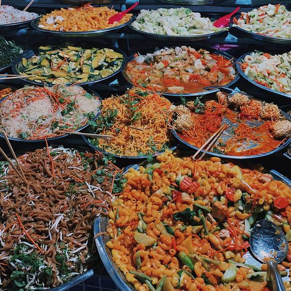 夜市上的素菜自助餐,生意超级火。洋人街应有尽有