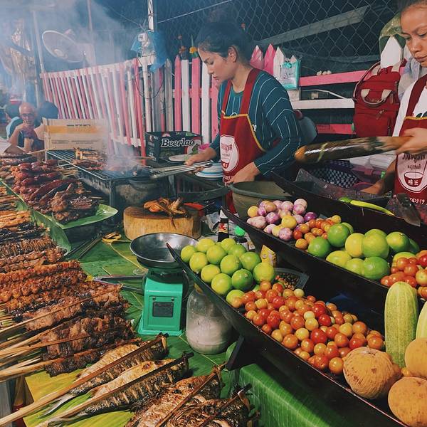 青柠、薄荷、辣椒,汤粉标配。烤香蕉和圣女果一般大小的圆茄子老挝茶即将开始的琅勃拉邦夜市热热闹闹的琅勃拉邦夜市
