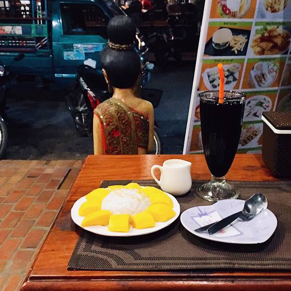 逛累了,再吃点夜宵,芒果糯米饭配老式咖啡,赞! 展开