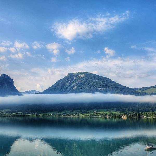 圣沃尔夫冈湖离萨尔茨堡并不远,整个湖区景色非常优美。蓝宝石般的湖面长10公里,宽1公里,最深处约114米。整个地区由12个大大小小的湖泊串联在一起,宛若珍珠一般。湖被茂密的林带、绿地和陡峭的群山环抱着,是奥地利阿尔卑斯山区最美的湖泊。《音乐之声》开场时看到航拍的那个璀璨宝蓝的湖泊,那就是沃尔夫冈湖。中世纪以来,哈布斯堡王朝的王公贵族们最喜欢来此度假、打猎,这里也是希茜公主和弗兰茨约瑟夫皇帝邂逅相遇的地方。据说当年莫扎特经常居住在湖边。