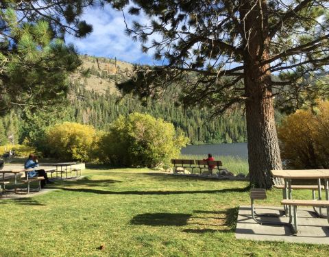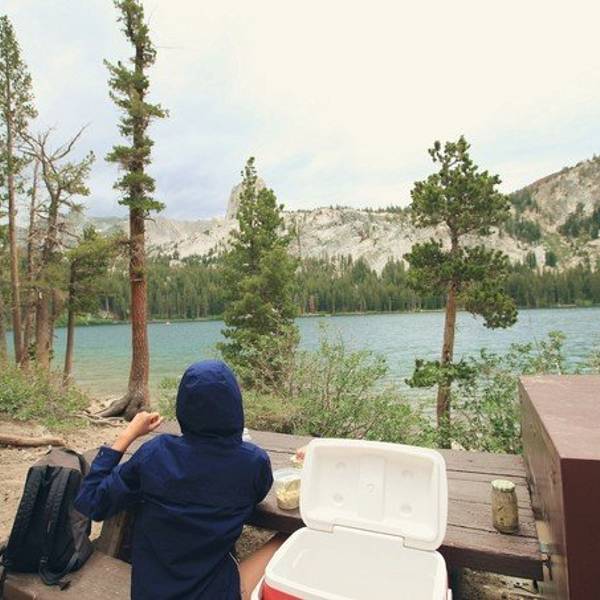 马姆莫斯这一片其实主要以湖为景点,一片一片的湖划分开各有名字。又碰上一家带着狗狗出游的歪果仁马姆莫斯湖这片区域,对我来说也是类似国家公园一样,有山有湖,适合驾车露营待上好几天,我们以为会一直在优胜美地,没想到住的其实略远,所以打算今天就近在猛犸象山看一看,走一走,试一次野炊~