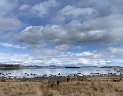 这片湖很大,湖水是蓝色的,让人觉得像是来到了一片圣地一样,能够净化人的心灵。