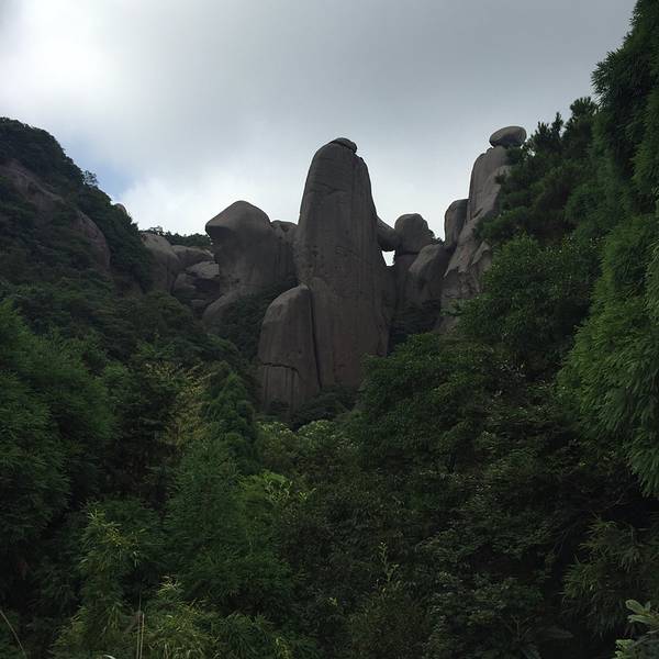 葫芦酒家默默说早餐好贵,两碗稀饭,两片豆腐乳、一盘花生、一盘黄瓜丝。 开始行程 葫芦酒家-迎仙栈道-爆龙潭-太姥之心(确实很像心脏连血管都有,经过此处确实也会比较凉快,天然的)-迎仙台-仙人据板-七星洞-观鲤亭-望仙桥(没去,只是远观)-白云寺-摩霄庵(据说是当年倚天屠龙记里的明教)-电视台招待所-覆顶峰