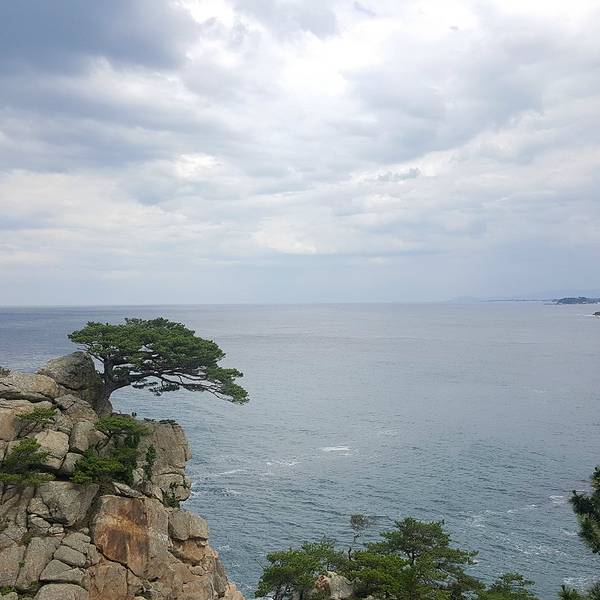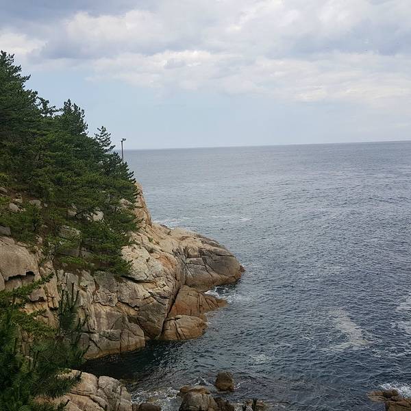 江原道有很多中国、甚至济州岛都没有的风景。 那就是站在奇岩绝壁上看旁边的大海、还有灯塔。 我们从束草海水浴场出发之后,就来到了一个叫做河赵台的地方。