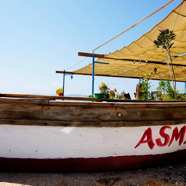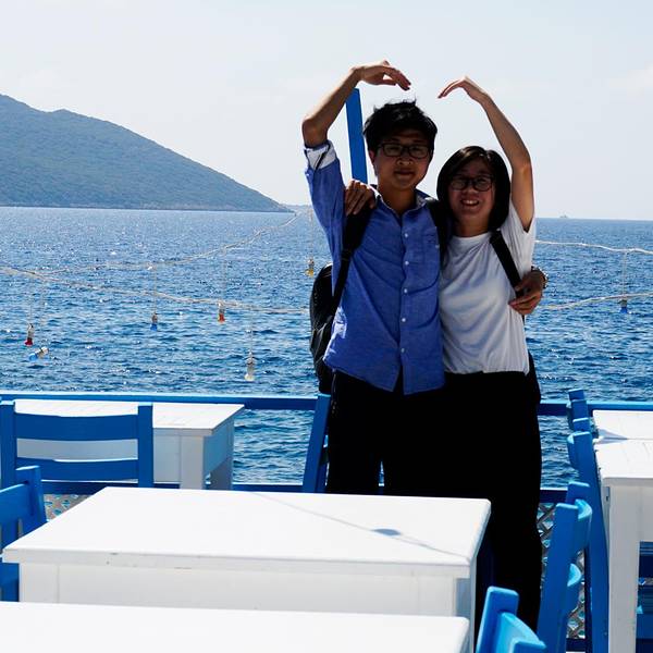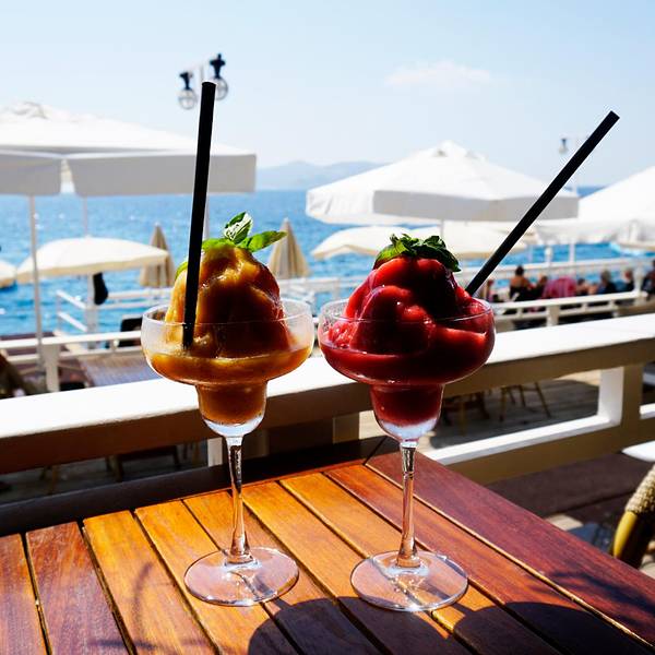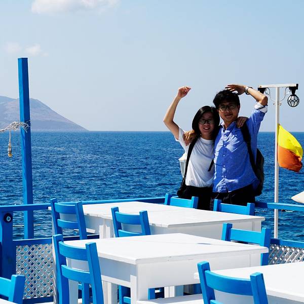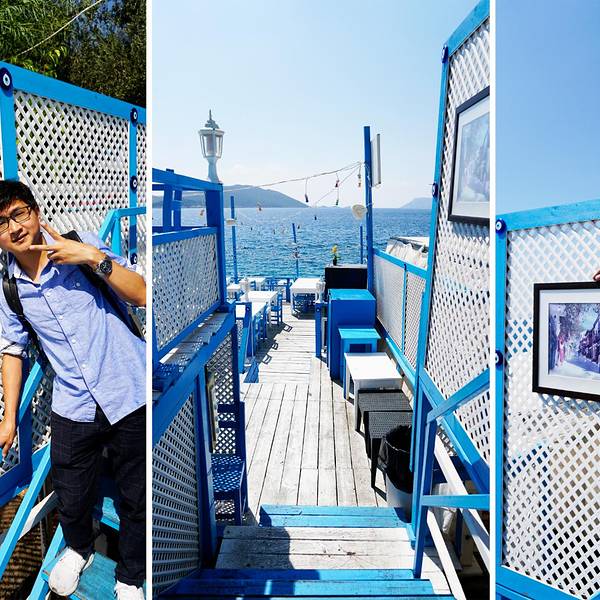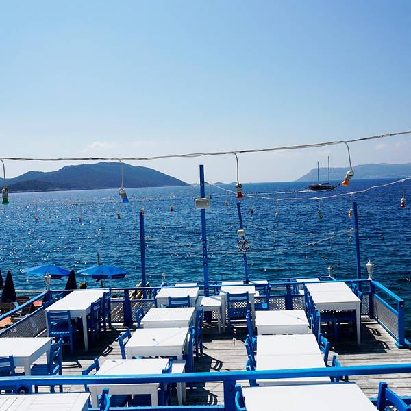 我们第六天大早我们依依不舍地离开了费特希耶,像房东太太告别。我们先是在民宿门口坐mini bus到Otogar,然后买了先到卡什再从卡什到安塔利亚的车票,乘坐大巴。大巴是沿着D400公路的。这一路都是在海边,海景美不胜收。大巴开了三个多小时左右,我们来到了卡什小镇了,车上可以看到漂亮的房子,坐落在半山腰上,也是白墙红瓦的风格,也是很地中海了。远处也可见一个小村落。捕捉到一条小船。港口停满了船。到了小镇,我们下了车准备去觅食了。早上到现在还没正经吃个饭,肚子已经饿得咕咕叫了。再美的景色也是要吃饱了再看啊。我们来到一个港口,看到了这个雕塑。这边也是可以乘坐滑翔伞的,但是没有费特希耶的火。走到海边,看到很多餐厅了,但是白天基本都没什么人,门口摆了好多桌子椅子,店门是关着的,估计晚上会营业吧。走了好几个餐厅都没开始营业,不过都装修得很精致,妥妥的地中海式的风格,拍照拍得忘记要吃饭了。随处可见的蓝眼睛。一个木船,应该是一个景点来着。那就打个卡吧。蔚蓝的大海哦。走着走着突然看到一个美爆了的地中海风格餐厅,经典的白蓝搭配,面向着大海,真的太惊艳了,就这样突然闯入我们的视线,可是餐厅也还没开始营业,不能坐在这饱餐一顿。不过此时只想在这多停留一会儿。看这装饰晚上肯定也很美吧。再来比心。能在这就餐就好了啊。这么多天下来果然锻造出古铜色了。帅气boy在线摆拍。玩了好一会,加上太阳实在是晒,我们又开始了觅食之路了。这一片的海和餐厅极为和谐,充满了度假风情。终于看到人了,哈哈哈。走了这么久,看这家餐厅是有人的,应该是可以吃到饭了。可能还可以顺便坐坐沙滩椅,美滋滋。小蚊子看中那个吊栏椅了。哈哈哈,终于坐上了。餐厅内部,是不是看着就很度假啊。我们选了个视野比较好的位置坐下来点餐了。终于可以吃上饭辽~认真看菜单的小蚊子。小蚊子这几天也是晒得黑了好多呀,路途也是很辛苦的。这个冰沙好好吃,当时天气炎热,刚好可以降降温。中午在卡什饱餐一顿也饱览了一番美景之后我们继续上路了。很期待接下来的Kaputaş卡普塔斯海滩。