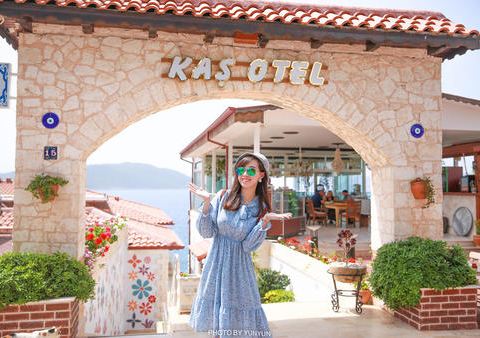 卡什(Kas),一个位于安塔利亚-费特希耶之间的地中海小镇,土耳其地中海边的秘密花园。浓浓的地中海风格,满目的蓝色与大海。 小镇距Oludeniz约100公里左右,在D400公路上,规模不大,以渔业和旅游业为主。码头上停靠着私人游艇、帆船和渔船,娱乐活动有限,所以没有大规模的游人前来,故而商业化程度不高,自然生态环境保护的很好,十分宁静安逸,水质也相当清澈。夏天的时候能出海潜水和玩水上降落伞。 我们第六天大早我们依依不舍地离开了费特希耶,像房东太太告别。我们先是在民宿门口坐mini bus到Otogar,然后买了先到卡什再从卡什到安塔利亚的车票,乘坐大巴。大巴是沿着D400公路的。这一路都是在海边,海景美不胜收。大巴开了三个多小时左右,我们来到了卡什小镇了,车上可以看到漂亮的房子,坐落在半山腰上,也是白墙红瓦的风格,也是很地中海了。远处也可见一个小村落。捕捉到一条小船。港口停满了船。到了小镇,我们下了车准备去觅食了。早上到现在还没正经吃个饭,肚子已经饿得咕咕叫了。再美的景色也是要吃饱了再看啊。我们来到一个港口,看到了这个雕塑。这边也是可以乘坐滑翔伞的,但是没有费特希耶的火。走到海边,看到很多餐厅了,但是白天基本都没什么人,门口摆了好多桌子椅子,店门是关着的,估计晚上会营业吧。走了好几个餐厅都没开始营业,不过都装修得很精致,妥妥的地中海式的风格,拍照拍得忘记要吃饭了。随处可见的蓝眼睛。一个木船,应该是一个景点来着。那就打个卡吧。蔚蓝的大海哦。走着走着突然看到一个美爆了的地中海风格餐厅,经典的白蓝搭配,面向着大海,真的太惊艳了,就这样突然闯入我们的视线,可是餐厅也还没开始营业,不能坐在这饱餐一顿。不过此时只想在这多停留一会儿。看这装饰晚上肯定也很美吧。再来比心。能在这就餐就好了啊。这么多天下来果然锻造出古铜色了。帅气boy在线摆拍。玩了好一会,加上太阳实在是晒,我们又开始了觅食之路了。这一片的海和餐厅极为和谐,充满了度假风情。终于看到人了,哈哈哈。走了这么久,看这家餐厅是有人的,应该是可以吃到饭了。可能还可以顺便坐坐沙滩椅,美滋滋。小蚊子看中那个吊栏椅了。哈哈哈,终于坐上了。餐厅内部,是不是看着就很度假啊。我们选了个视野比较好的位置坐下来点餐了。终于可以吃上饭辽~认真看菜单的小蚊子。小蚊子这几天也是晒得黑了好多呀,路途也是很辛苦的。这个冰沙好好吃,当时天气炎热,刚好可以降降温。中午在卡什饱餐一顿也饱览了一番美景之后我们继续上路了。很期待接下来的Kaputaş卡普塔斯海滩。 卡什的海滩有着特殊的绿松石色调,它们看起来美得离谱,总会让人产生要奔向大海的冲动。 Kaputaş卡普塔斯海滩,是卡什最著名的海滩,近几年的网红打卡地,很值得一看。 Kaputaş卡普塔斯海滩像是人间天堂,因为海底坡度大,可以清晰地看到海水颜色从清白到嫩绿到蔚蓝依次过渡。真的美得不像话。我们是乘坐的大巴,大巴司机也知道这个著名的打卡点,所以就停下来让我们去拍拍照,看看风景,但是只能停留两三分钟,于是我们飞快跑下车,咔嚓咔嚓捕捉了几张这令人惊叹的美景。真的随便怎么拍都好看,亲眼见到只剩惊叹。不能在这多逗留下去走走也是有一丝遗憾的,还是希望下次有机会再来吧。太美太美了。感觉来土耳其这几天,一直在刷新我对美的认识。多看看外面的世界,才知道之前的自己有多么狭隘。这也是旅游的意义之一吧。构图乱七八糟也不耽误人家的美。这个时候司机好像在喊上车啦,赶紧又按下快门拍了一张。卡什真的太美啦,由于时间关系我们也只是在海滩边走了走,还没有到镇上内部去逛,看攻略说也是很棒的。这个也只能等下次啦。 拜拜~卡什,下次见。