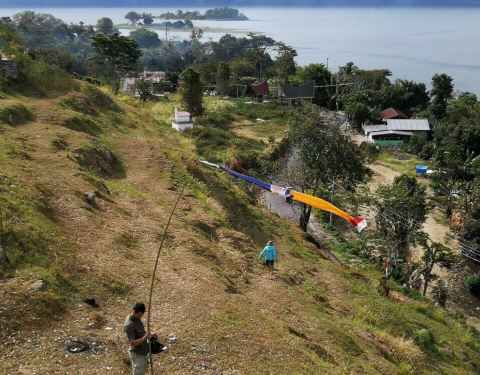 是印尼绵兰境内的一个天然湖泊,风景优美,生态保持良好。无工业污染湖水。湖水清沏。