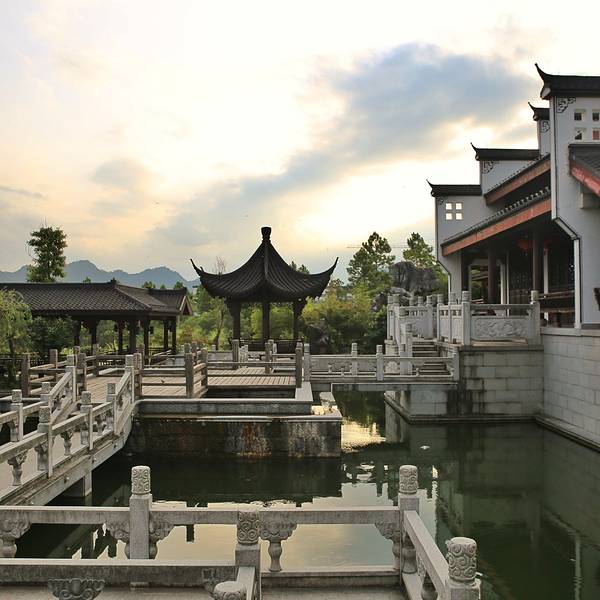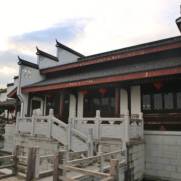 ...徽派建筑特点,曲桥迴廊的江南庭院风格,如小家碧玉般灵秀,打造成以塔、院、湖相互辉映的奎文塔景区