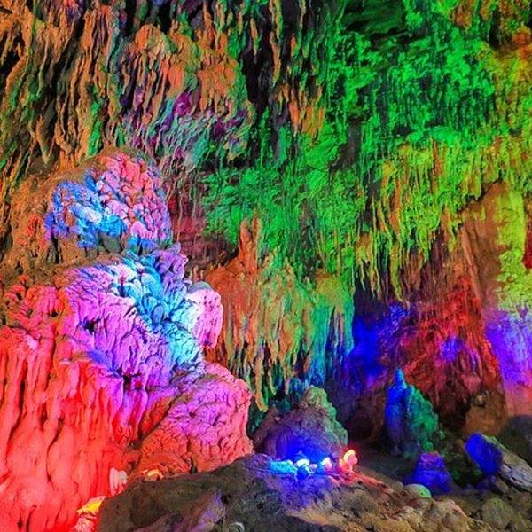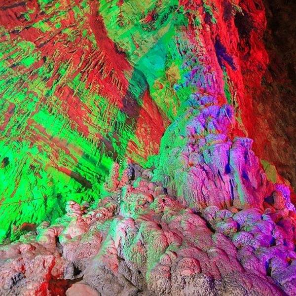 在现代声光科技的映衬,藏龙洞五彩斑斓,宛若仙境。 3、景区免费提供手电