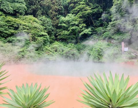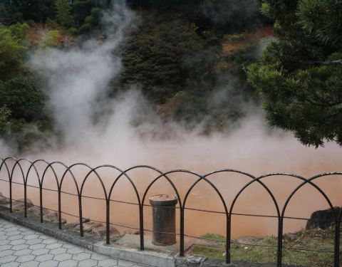 血之池地狱是八大地狱温泉之一,温泉水温为78度,它让人印象最深的便是那泛着血红色的泉水,水体中富含的铁元素,好似血液在翻滚。