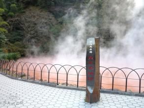 别府八大地狱之一,和龙卷地狱在一起的,需要坐公交车去,红色的泉水热气腾腾的冒着烟,应该是富含铁质的水,这里也有公共的泡脚池可以免费使用,走累了就泡一下,水温挺烫的,泡完很舒服,继续下一个景点。