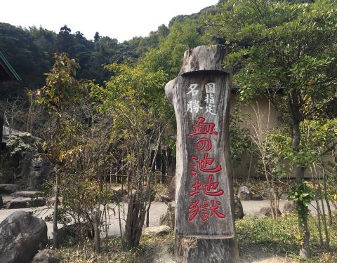 八大地狱温泉之一,日本最古老的天然温泉之一,富含铁元素的温泉水可治疗脚气。