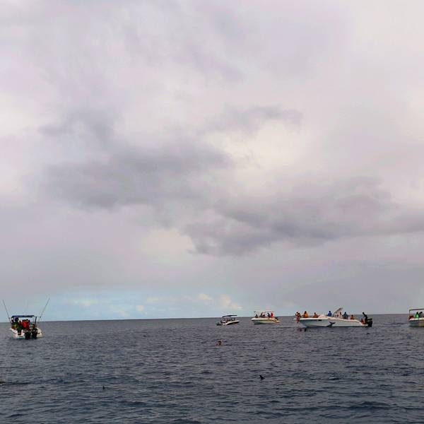 sky说在毛里求斯,追海豚这个项目已经有好几十年的历史了,所以这里的海豚是祖祖...看到这里有很多的船只停了下来,仔细一看水面,(我没有长焦,所以拍不清楚)有很多海豚的鱼鳍都已经露在海面上了~突然有些兴奋。