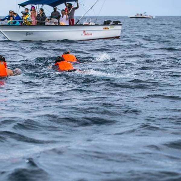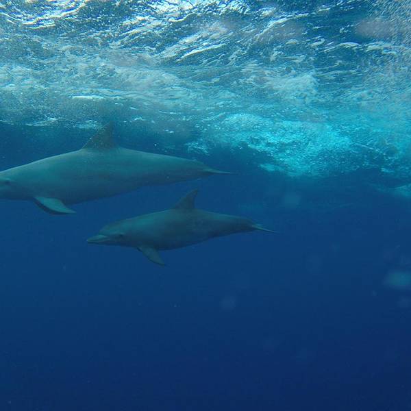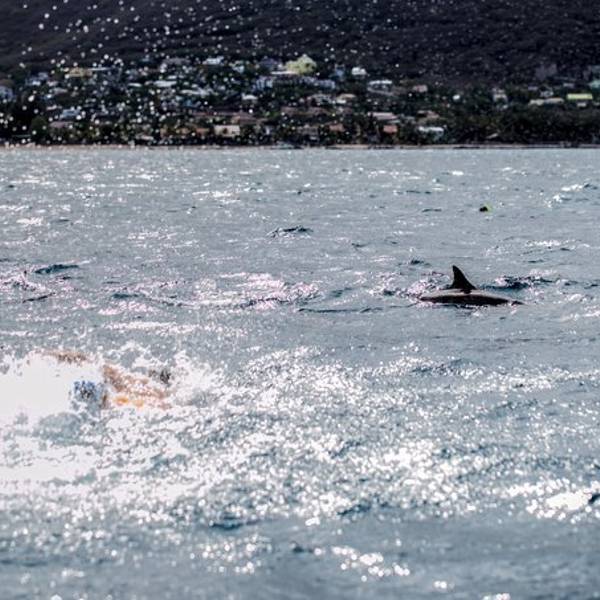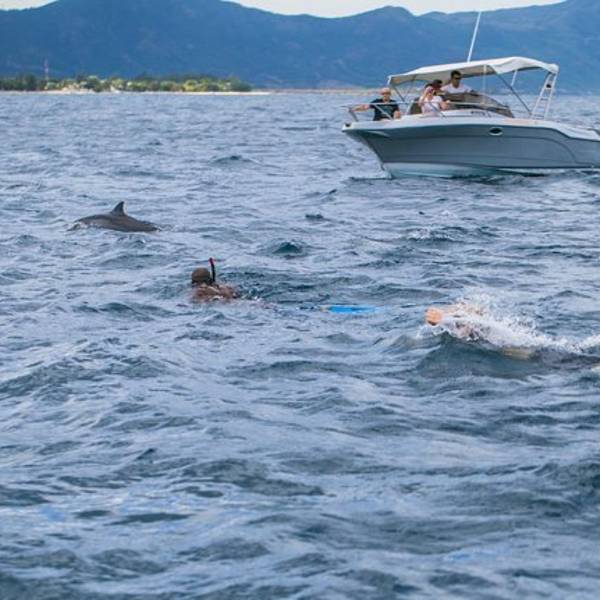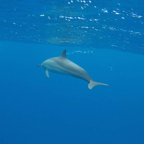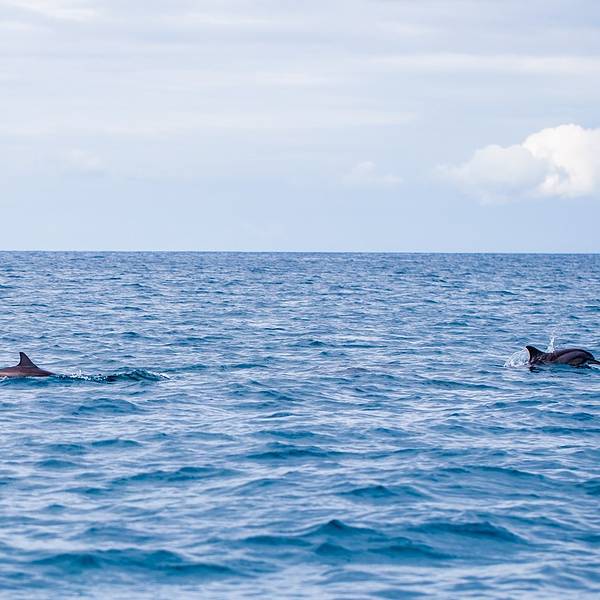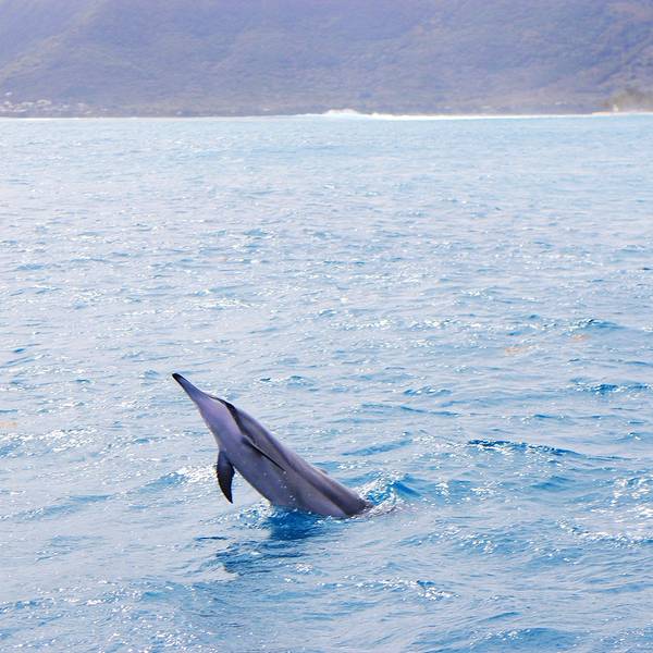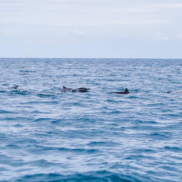 坐上快艇出海找寻海豚的身姿,与宽吻海豚近距离接触。