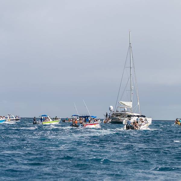 ...了海豚巡游的必经之处,我惊呆了,我从来没有看到过这么多快艇在海面等待的样子,像极了一场电影大片海豚湾,快艇与海豚的一场大片般的追逐