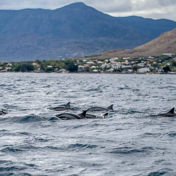 追海豚 和 蓝湾浮潜我都是自己带了浮潜装备 船上也会有但是 个人觉得 不干净 追海豚需要早起 大概6点的样子 毛里求斯大概和中国有4小时时差 等于说是中国时间的凌晨起床 当然去追海豚的前提是水性要好 因为船会开到50米深的地方 静静等待海豚 海豚突然出现你就需要直接跳入海中 去追 可以带上gopro 水下相机设备去拍 海豚靠你近的时候可以听见它们声音 特别激动啊 和它们一起在海中畅游 真的是很特别的体验 中途还可以看到鲸鱼 不过也会有看不见海豚的时候 全靠运气 所以去的时候一定一定要选择好季节 不然连出海都不可能