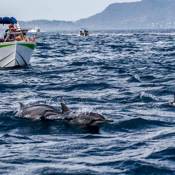 第三天,是个多云的早晨,我们被接到海豚湾,去追寻那群可爱的小精灵。在毛里求斯,你压根不用担心今天会看不到海豚,海豚是天天按着路线巡游,喜爱人类的它们,很乐意和人...海豚湾,快艇与海豚的一场大片般的追逐