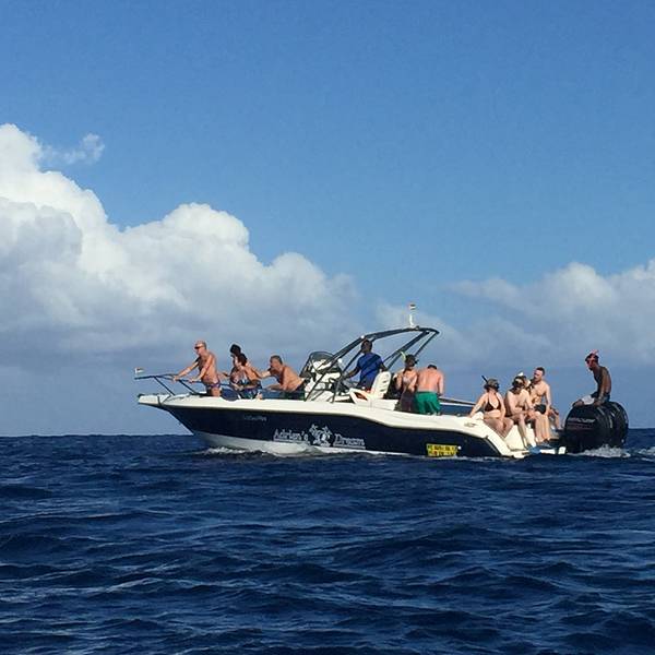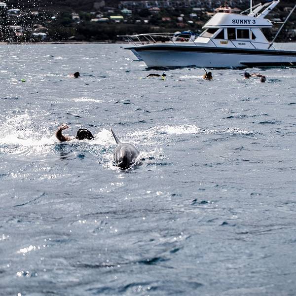 可以浮浅,下海看海豚~但我们水性不好,也就没带潜水装备~没下去一群海豚,跟鲨鱼的感觉似的...又是一个早起的早晨,六点出发去西部出海追海豚~最早出发。。。早上九点多才到出发地点。。。路上居然堵车了。。。