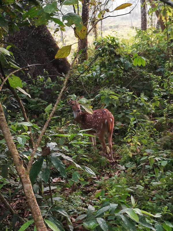 第二天天不亮就出发了,前往奇特旺,奇特旺是一个国家森林公园,动物的天堂,所有动物都是野生的,和野生动物亲密接触,和谐相处,跟随犀牛🦏的脚印丛林徒步,很nice。 路程6小时,前2-3小时一路上没有厕所可以上。从1300米的海拔到200米的海拔,尼泊尔没有高速公路,一路弯弯绕绕,下了这个山头又上那个山头,带个u型枕实在太有必要了,救了我的老腰。睡眼惺忪恍惚以为在我们的秦岭大山中。。。。路途中有个喜马拉雅咖啡说是不错可以尝尝。尼泊尔车辆的喇叭声非常特别,可以注意一下,有点像大象的叫声,说不定灵感就源于此呢。开往奇特旺,能看见雪山,就是雾太大。住的酒店,就像在丛林中。在这里可以实实在在用到语文课上学的宁静这个词了,没有工业污染,城市嘈杂,动物是这里的主人,他们可以随意窜走,睡前会有明天会不会门口或者窗台上蹲个🐒或者翠鸟的念头。早上总是被鸡鸣狗吠叫醒,原汁原味的乡村田野生活。我的小屋🐒原始丛林围观犀牛🦏,两只😇河对岸非洲草原既视感薄雾弥漫 翻腾缭绕独木舟泛湖鳄鱼晒太阳翠鸟宁静的倒影徒步又出丛林碰见犀牛白蚁筑巢梅花鹿最不自由的动物就是大象了,有的被铁链绑着着急不能自由,有的是既来之则安之,绕着桩子一圈圈走,有的就会找乐子了自己跟自己摇摆着玩。去森林公园看野生动物和动物园真的是天壤之别,森林公园能看到的是动物的天性,各种动物相处的原生态,动物园看的只是皮相,没有灵魂🤩
