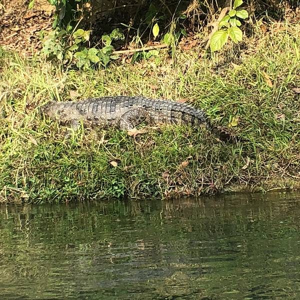 因为早上一直下雨,下午才出去玩。 泛舟,可以看到鳄鱼在河边晒太阳。