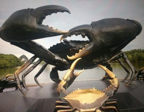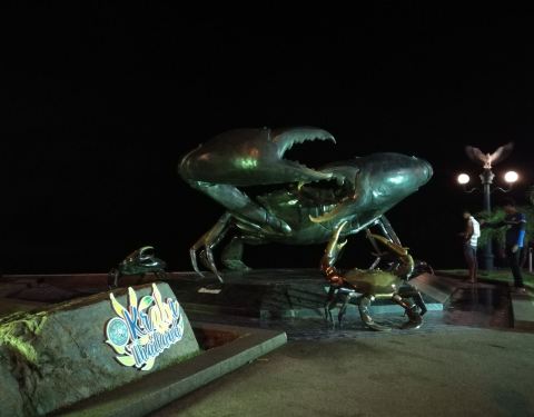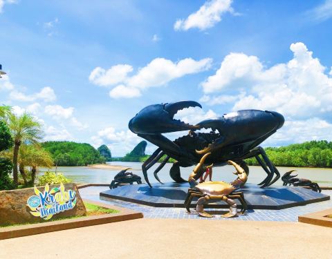 甲米镇的大螃蟹雕像也算甲米海岛外为数不多的景点之一了。大太阳底下拍个照片,因为我是巨蟹座。so,对螃蟹什么的天生有好感呀,当然,也包括各种好吃的帝王蟹、雪蟹、大闸蟹哈哈。 雕像由螃蟹妈妈和螃蟹宝宝们组成,距离甲米镇中心的商场、猩猩红绿灯、白庙也很近,可以顺路一起去掉。