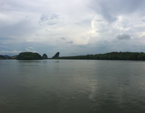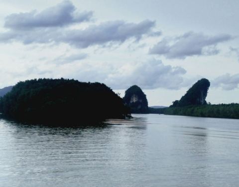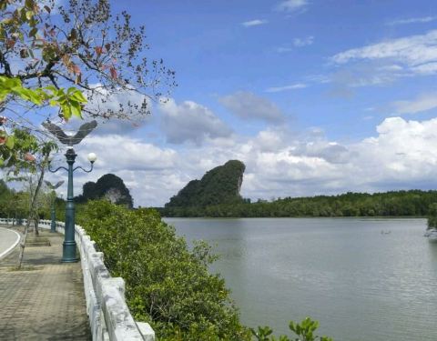 远远望去...我还以为是一个海鲜大排档呢...想不到螃蟹是地标来的...跟远处的两座山对衫...大螃蟹雕塑就在甲米河旁边...